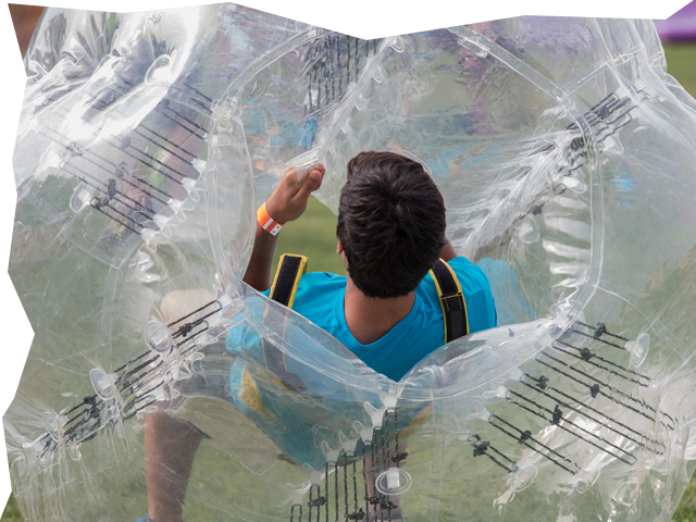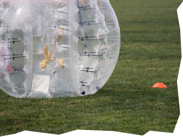 Eingehüllt in große Kugeln, sogenannte „Bubbles“ oder auch „Bumperz“, tretet ihr in 4er Teams gegeneinander an. Euer Ziel ist es, wie beim Fußball, den Ball ins gegnerische Tor zu schießen. Für ein besonders aktives Spiel wird auf einen festen Torwart verzichtet, wer das Tor verteidigt entscheidet ihr selbst.